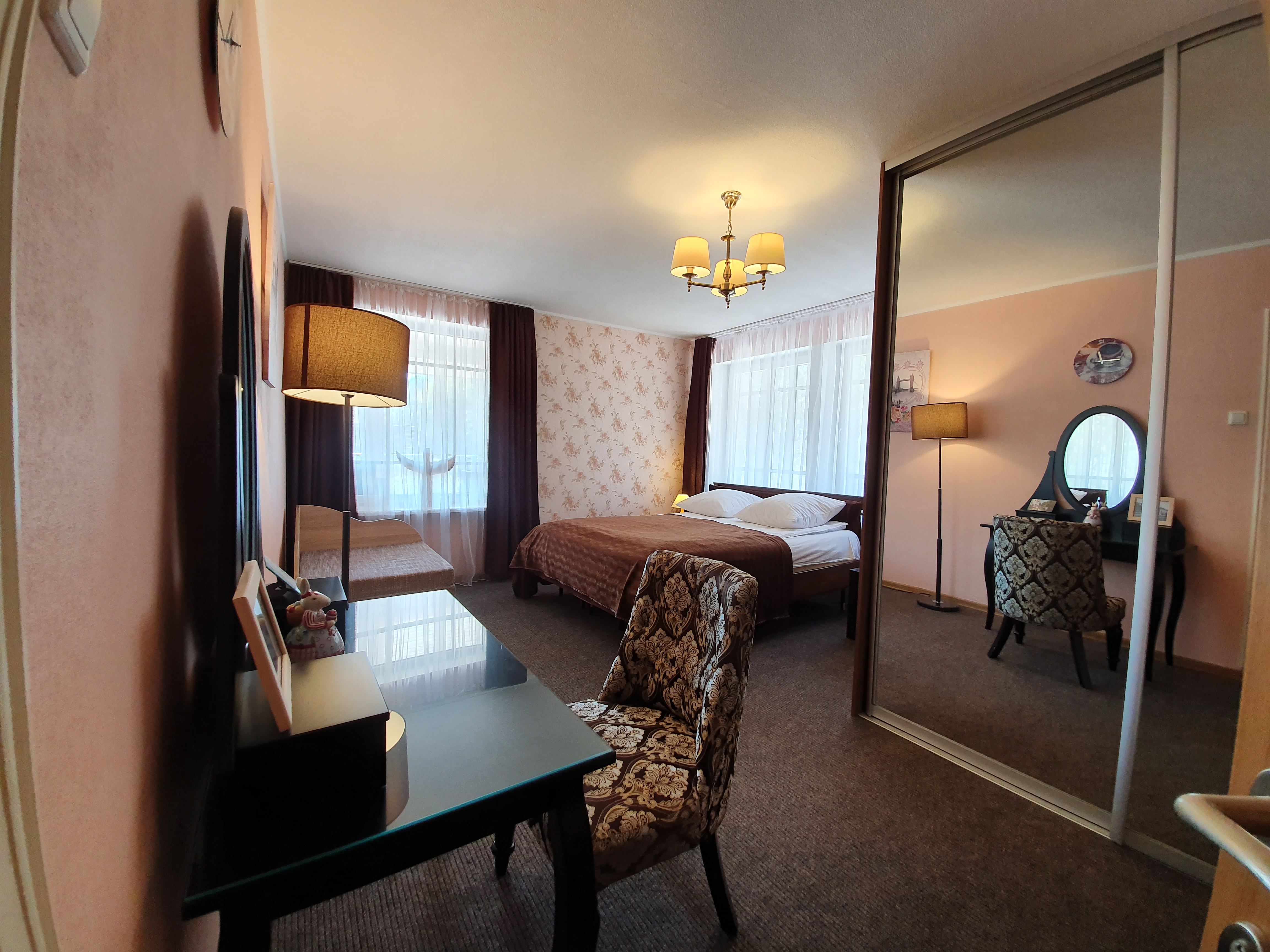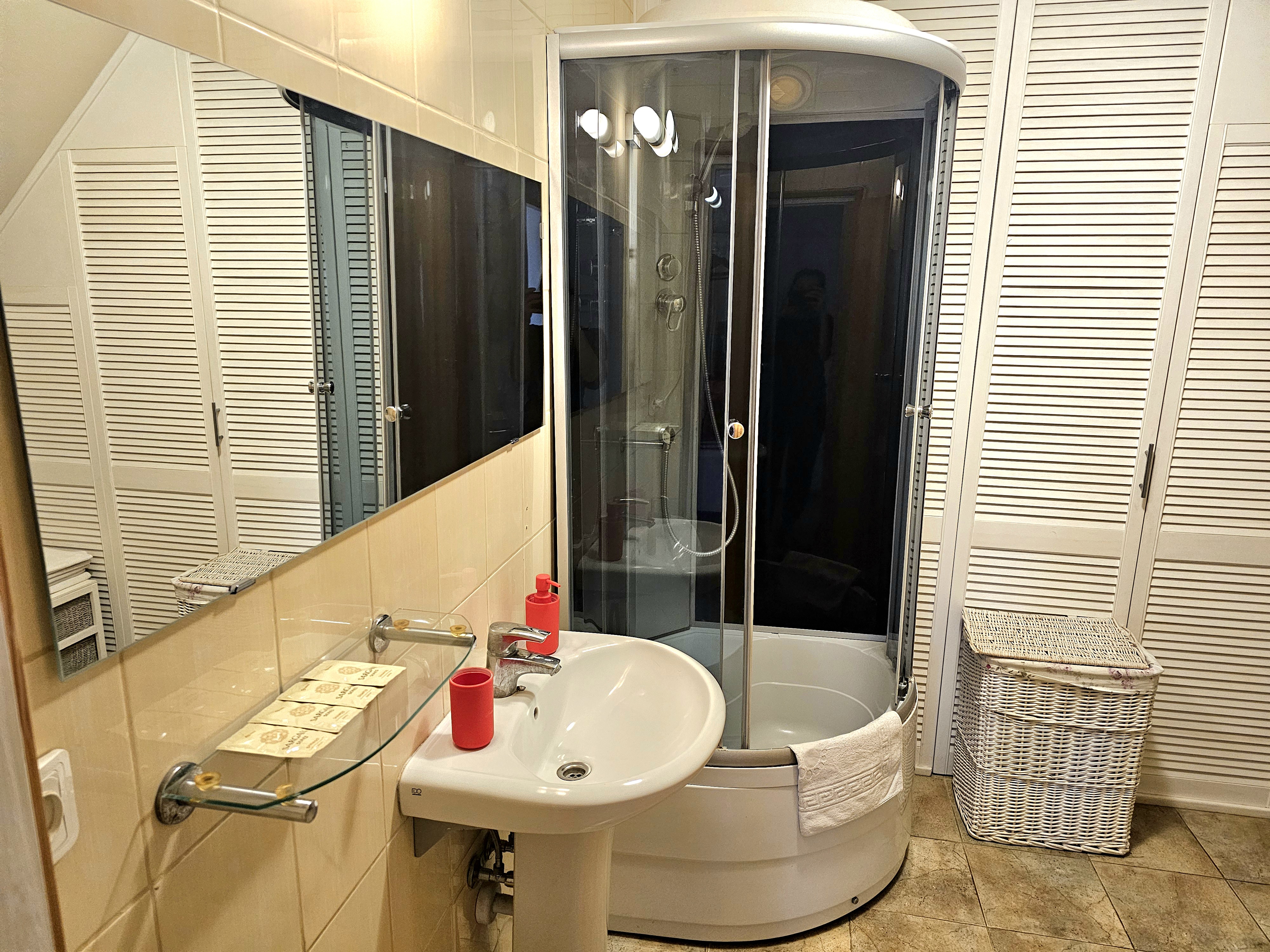The apartment is located on the second floor of the guest house. Two bedrooms, each with a double bed 160*200 cm, and a fold-out sofa bed for the third person in the room. Thus, 6 people can live in the apartment at once, there is no separate living room, there is a kitchen with a dining area, where there is a refrigerator with a freezer, induction hob, microwave. There is a washing machine in the bathroom. These apartments have their own corner on the terrace with a sofa and chairs, which gives guests another opportunity to work in nature, but in the shade.